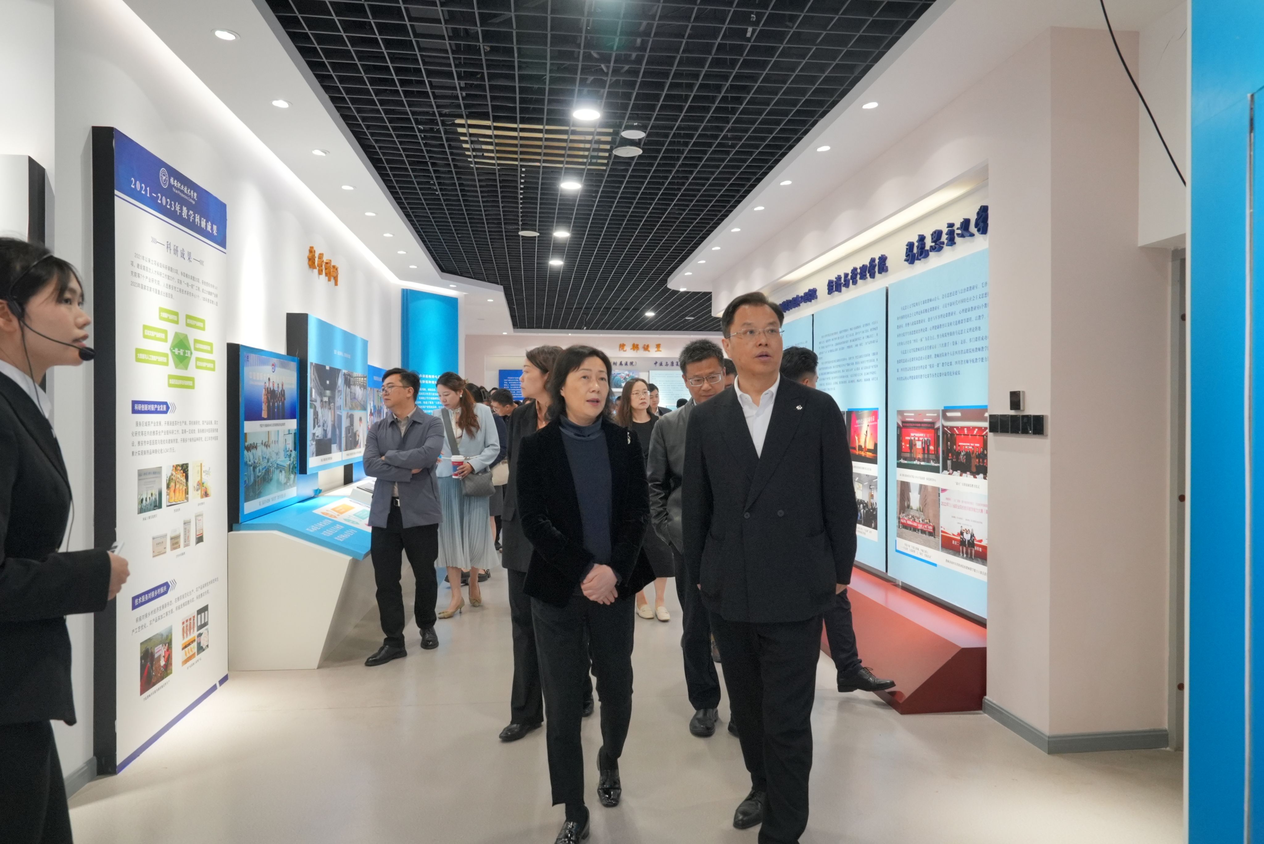 会前,姚义纯一行通过参观校史馆详细了解学校的发展历程、办学特色、专业建设及人才培养等方面取得的成果,对学校在职业教育领域取得的成就表示赞赏。